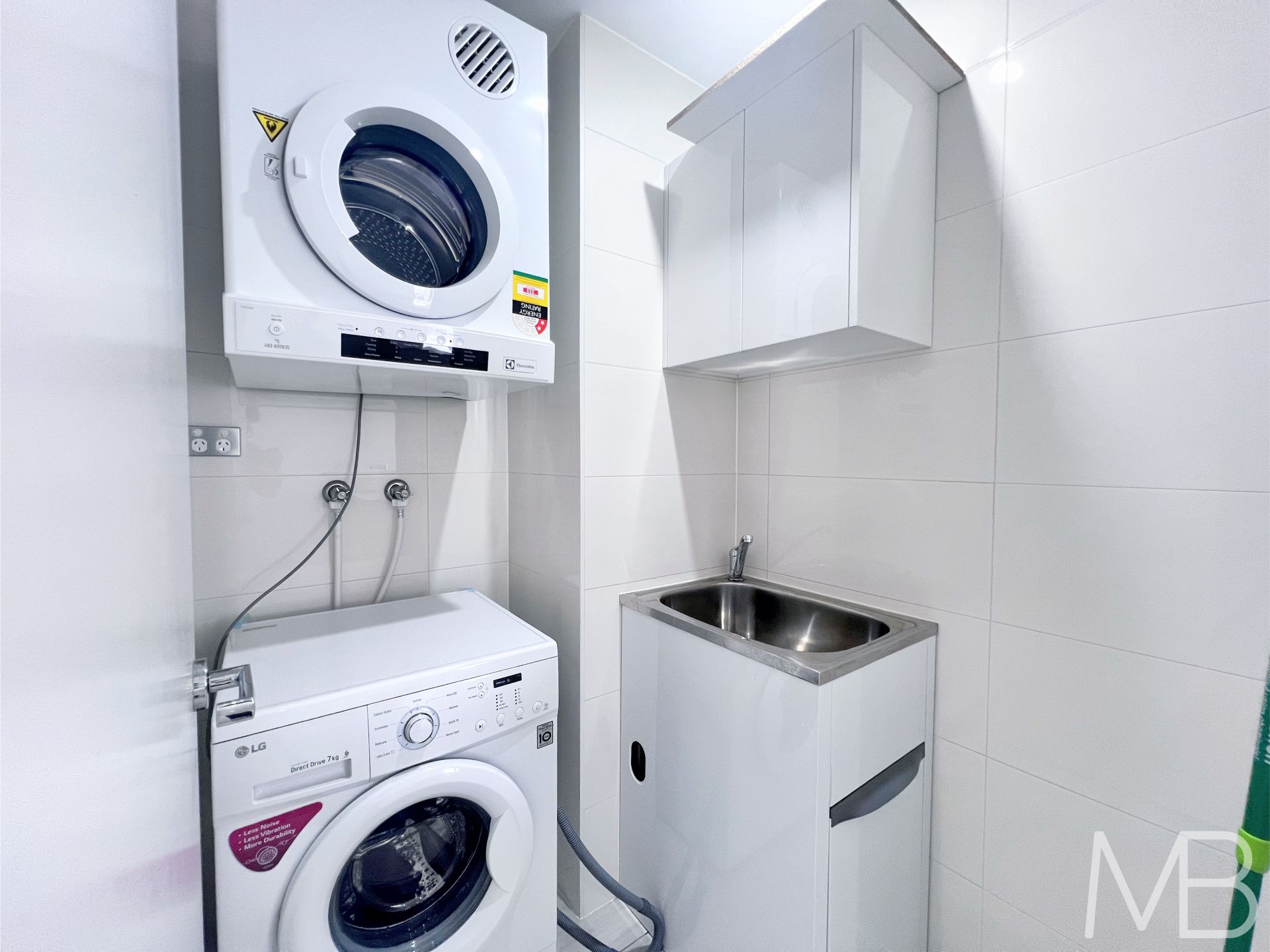 Internal laundry with dryer, integrated reverse cycle air conditioning throughout
