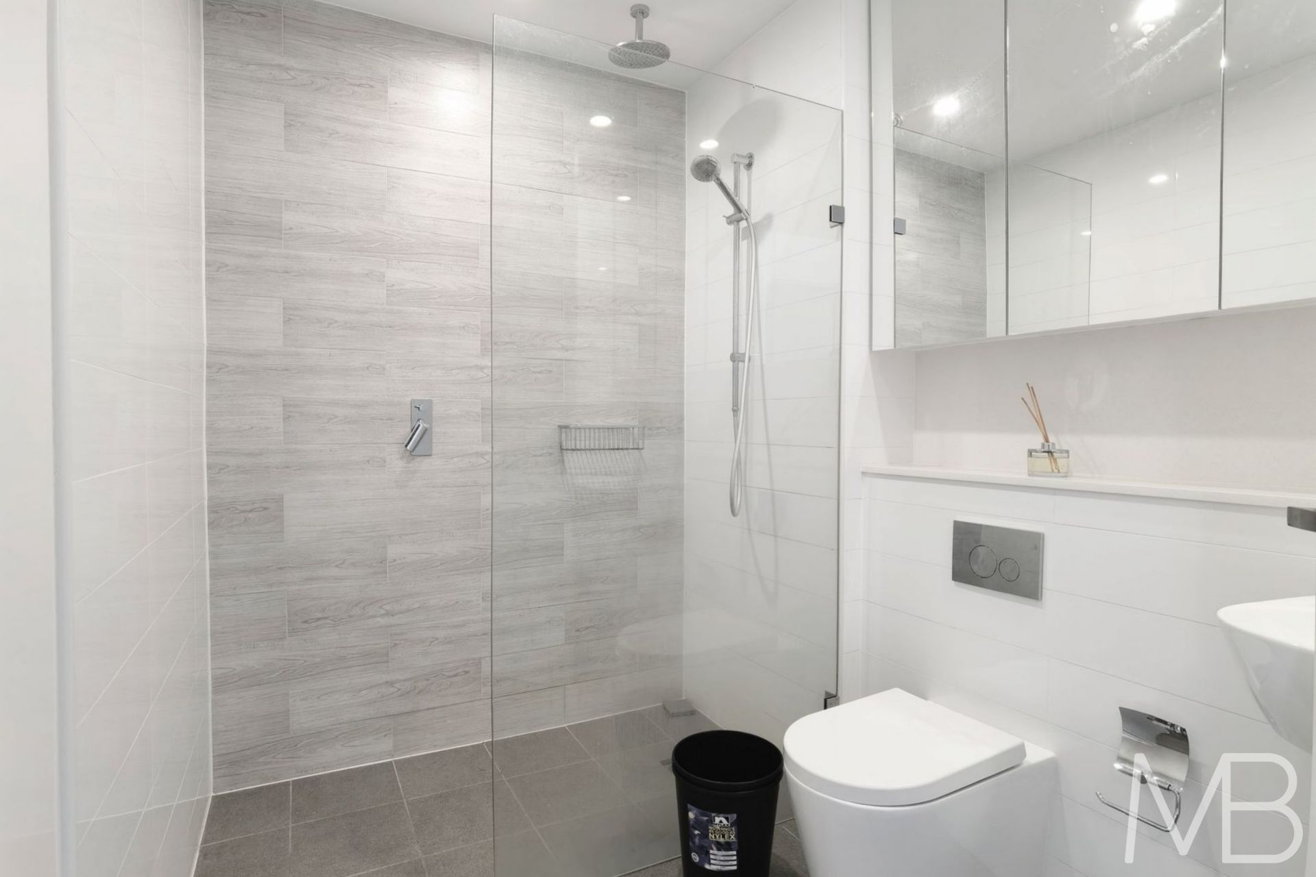 Stylish fully tiled bathroom