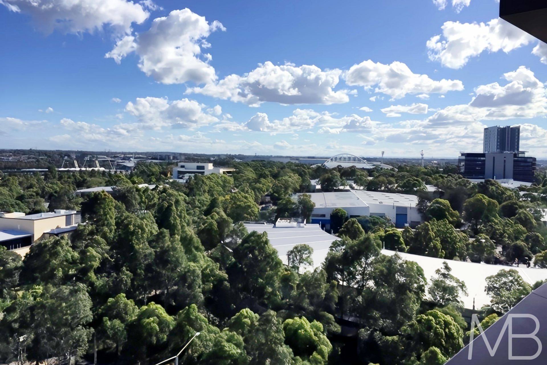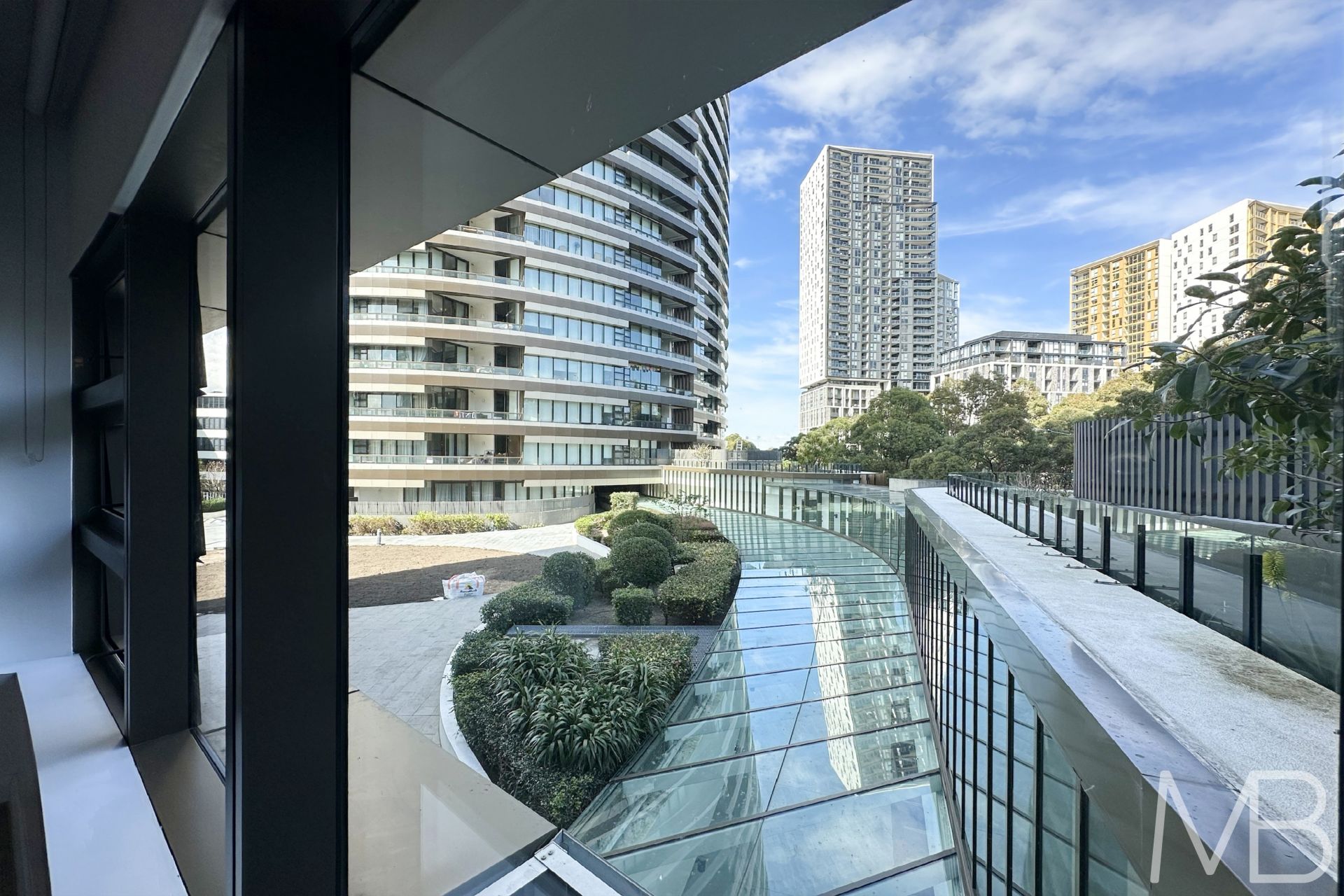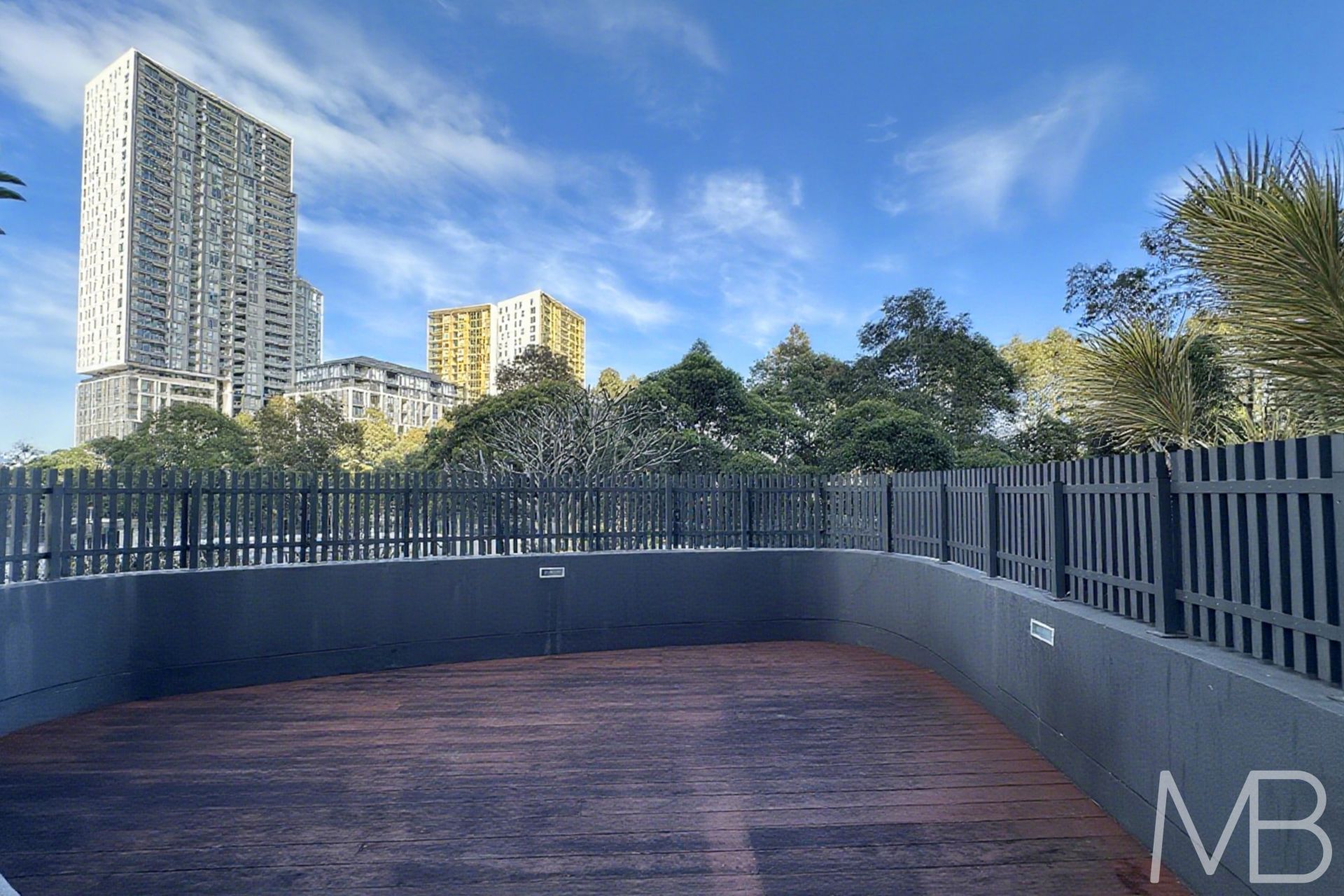 Large open terrace garden balcony surrounded by world-class sporting venues and lush green lands
