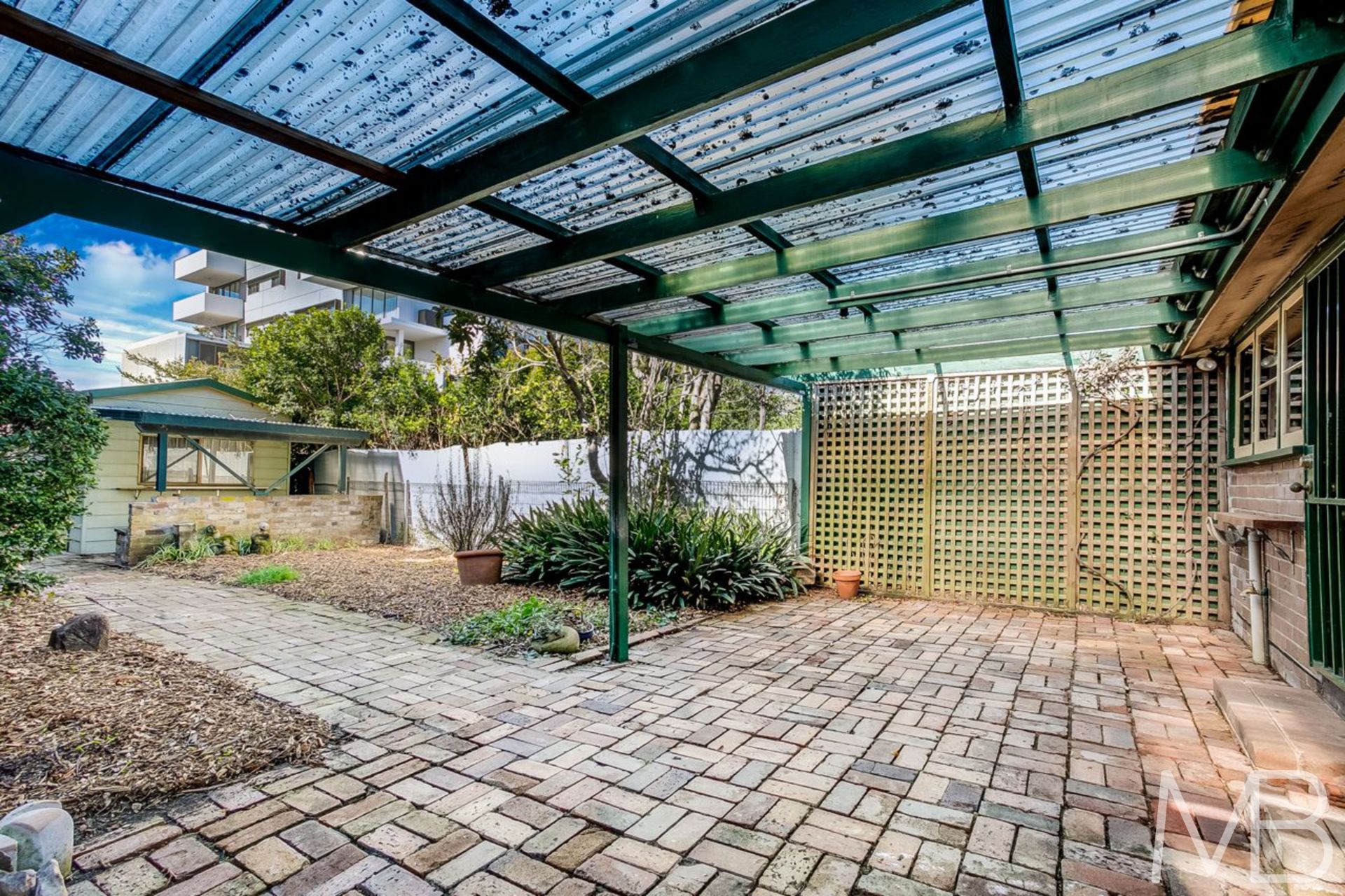 Large courtyard and pergola, well-maintained garden