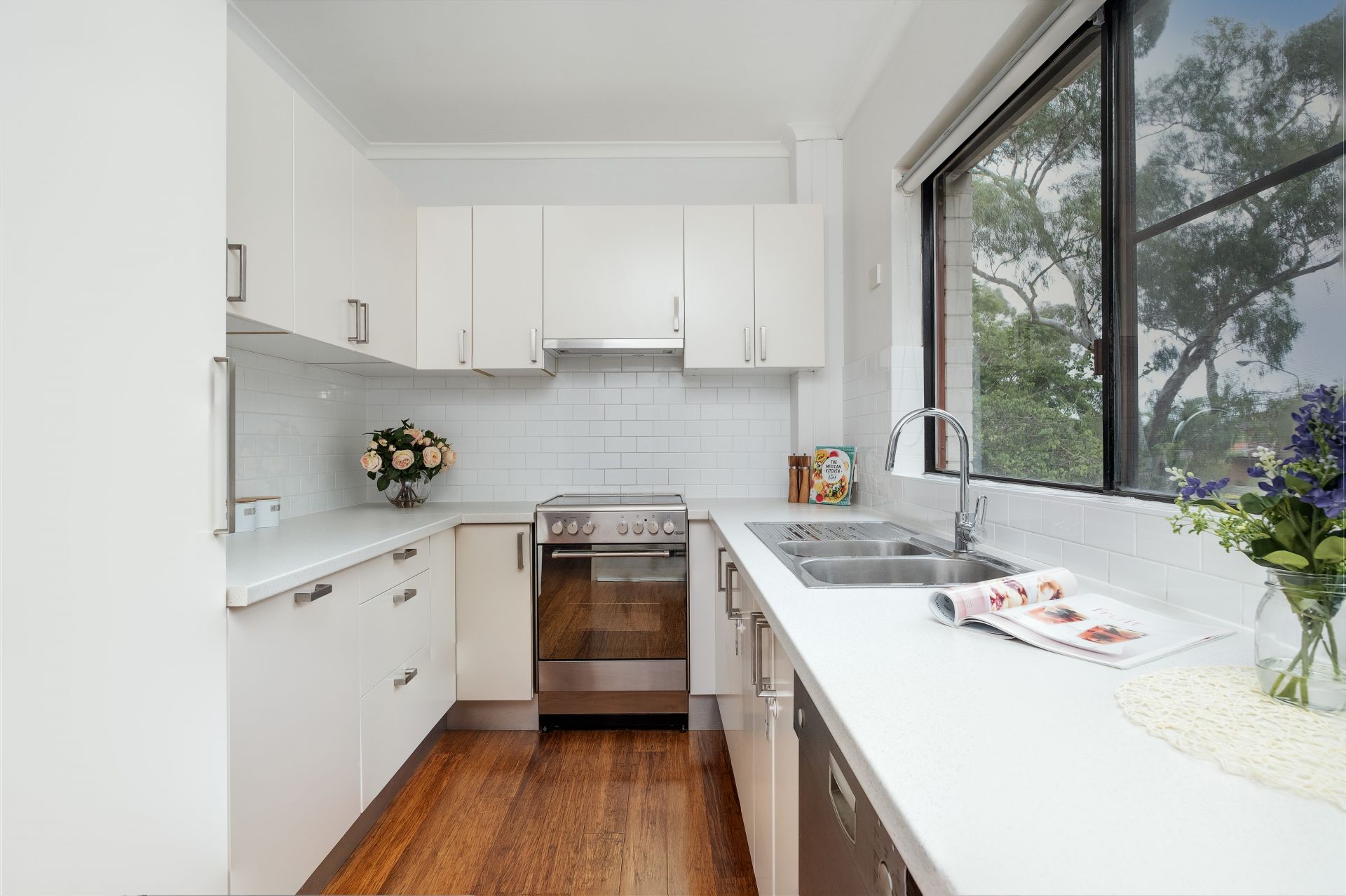 With a palette of contemporary white interiors complemented by striking bamboo flooring, the apartment exudes style and sophistication