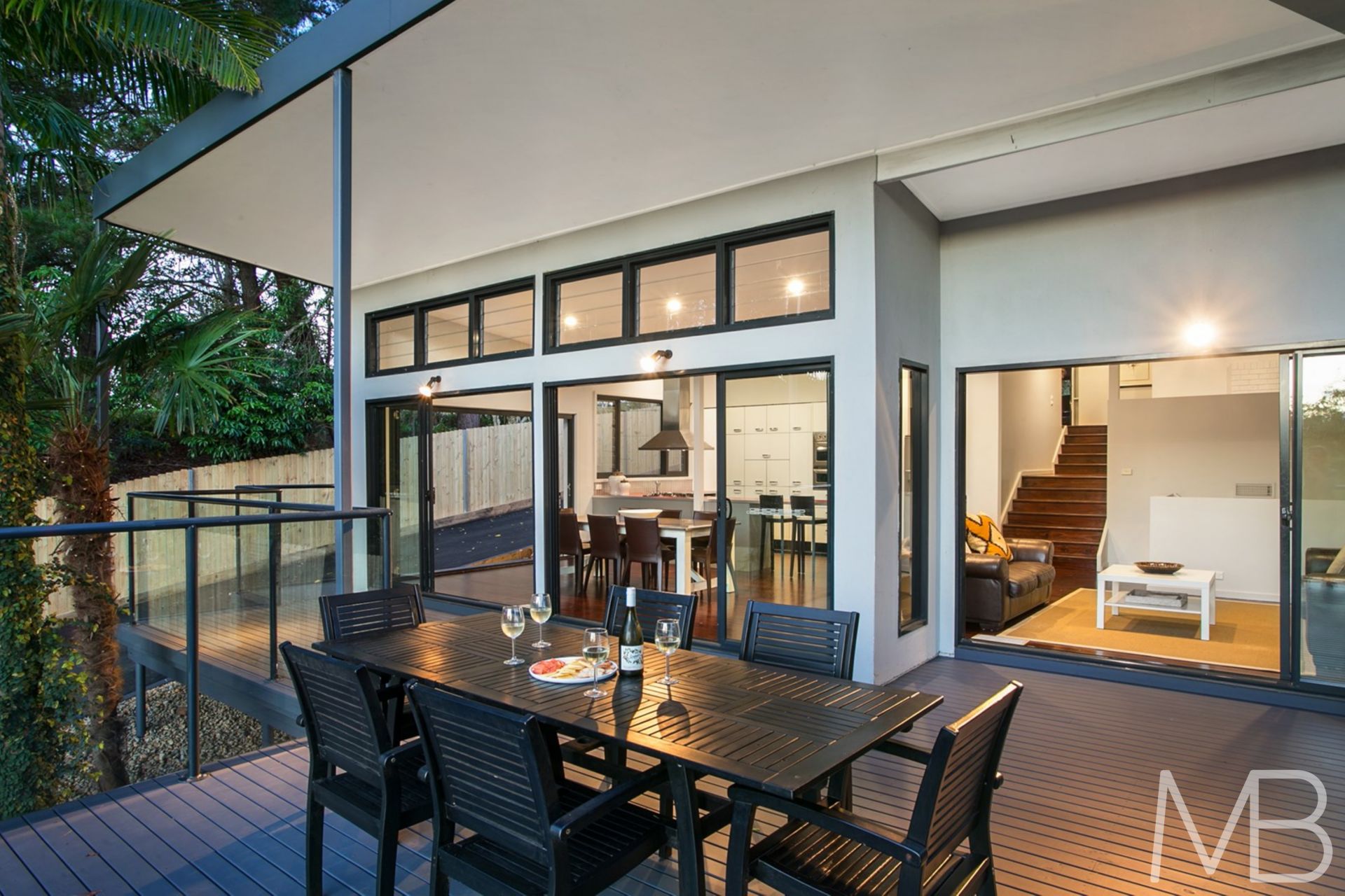 Open-plan family living and dining with innate flow to the fabulous deck with views