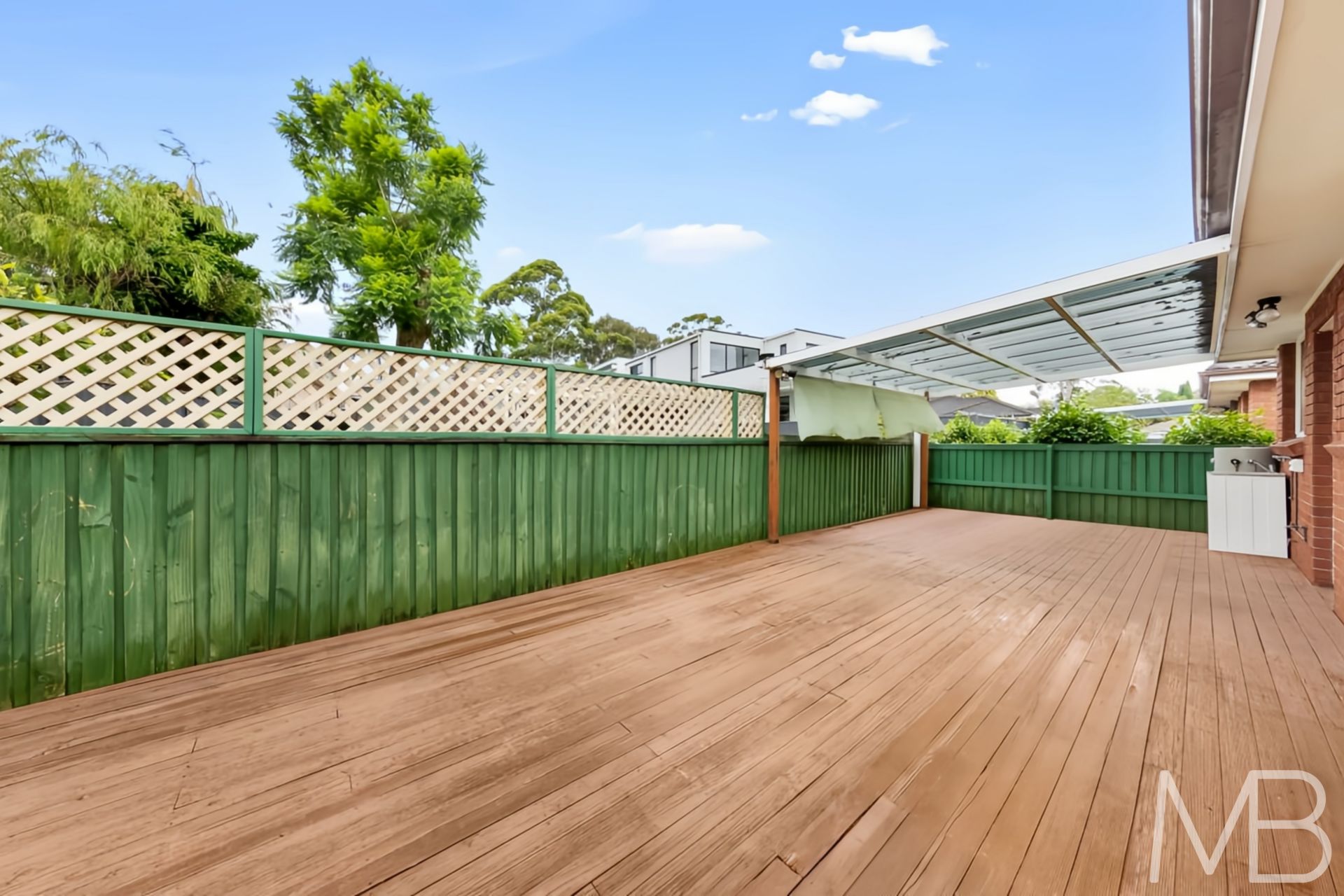 Timber entertaining deck overlooking a private level backyard