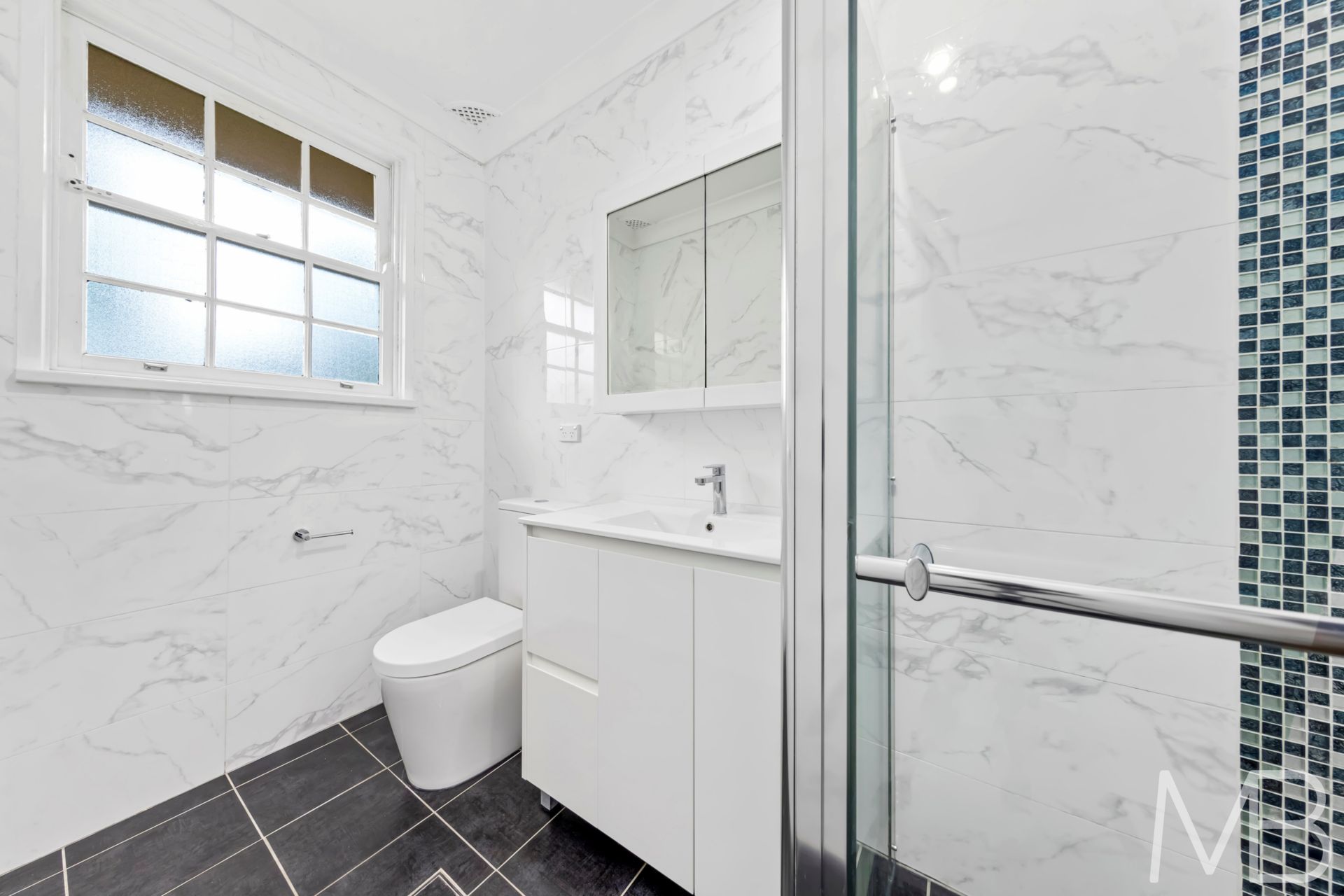 Refreshed modern bathroom with stylish tiled finishes