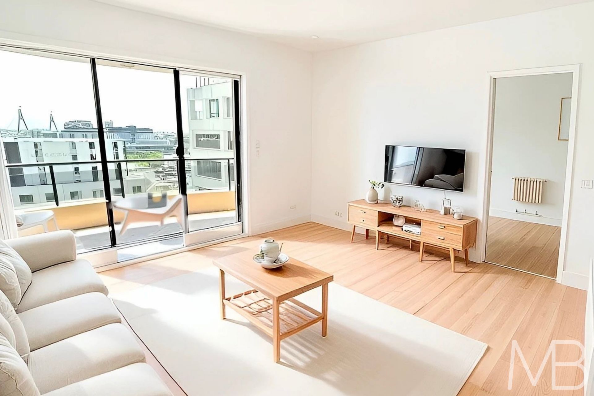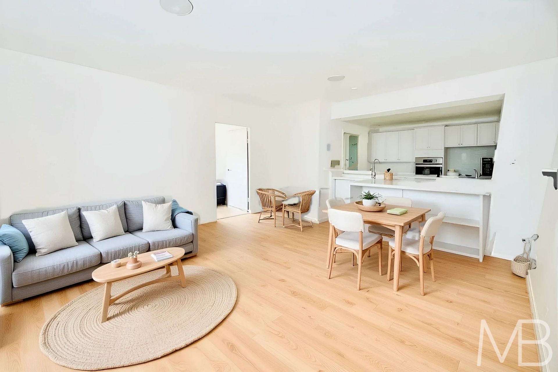 Expansive open plan living and dining flowing to a private balcony