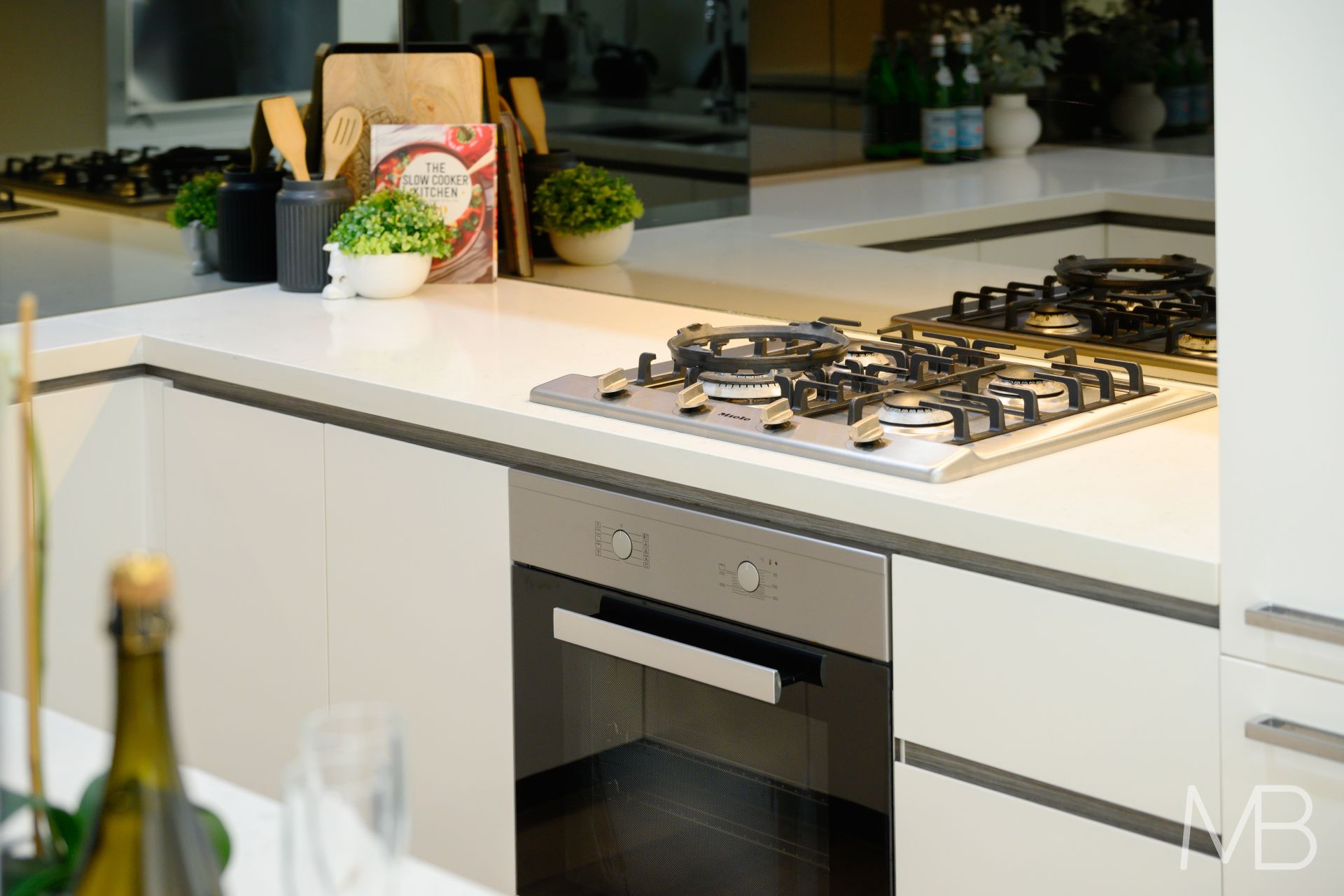 Sleek designer kitchen with Miele appliances and integrated fridge