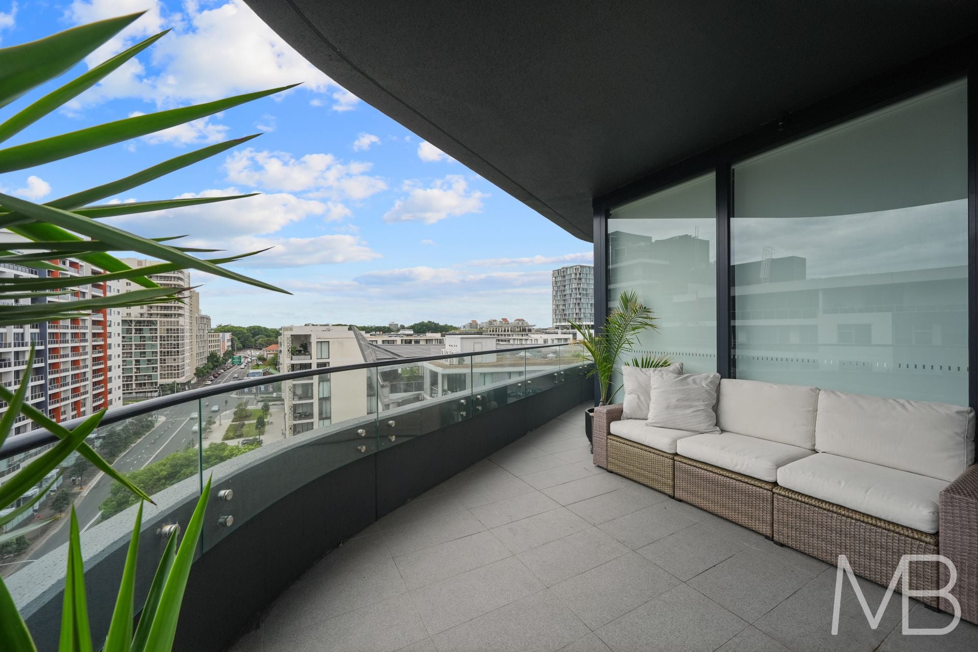 Set high on the 9th floor, this light-filled residence showcases an expansive 180° wraparound balcony complemented by a captivating city skyline outlook