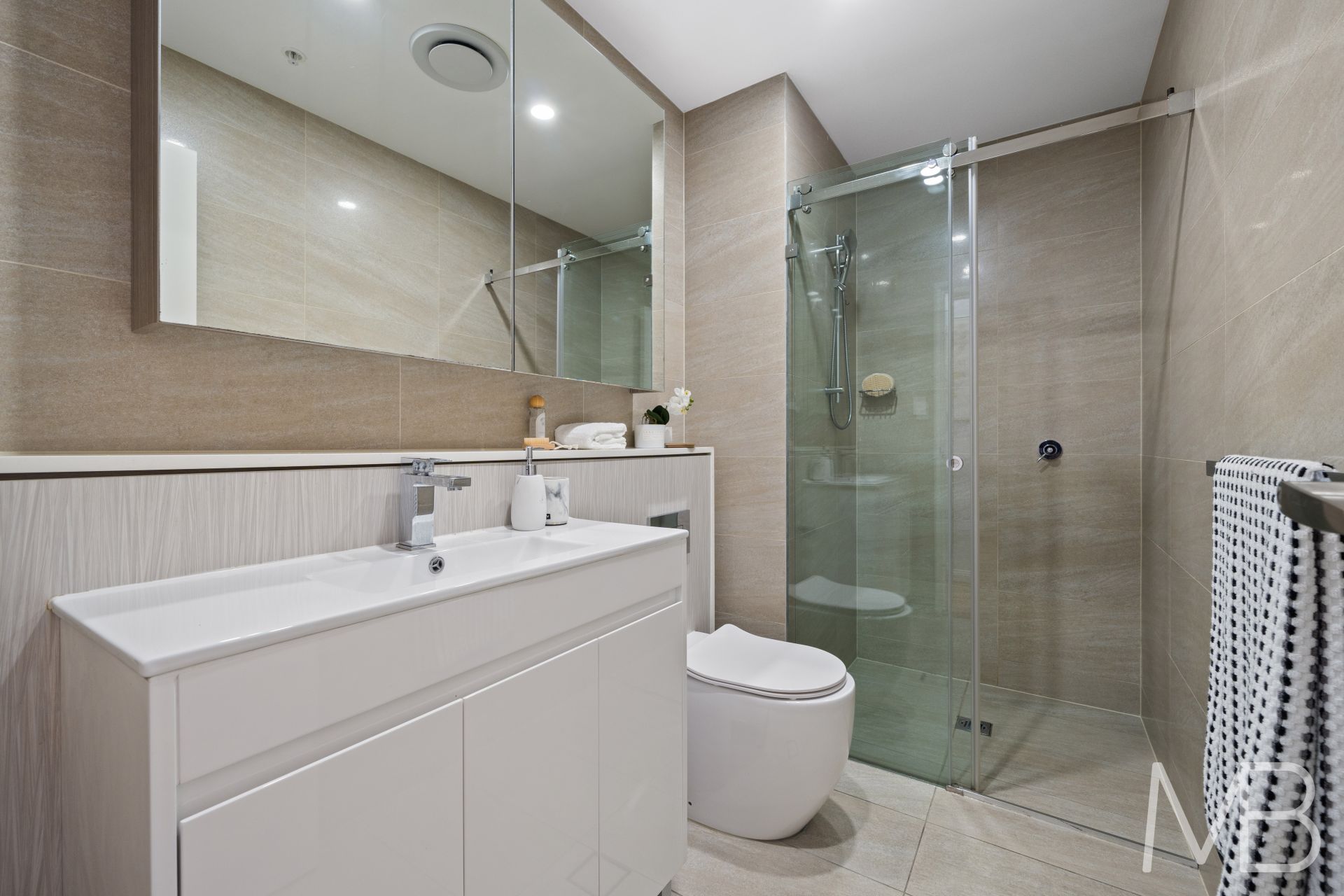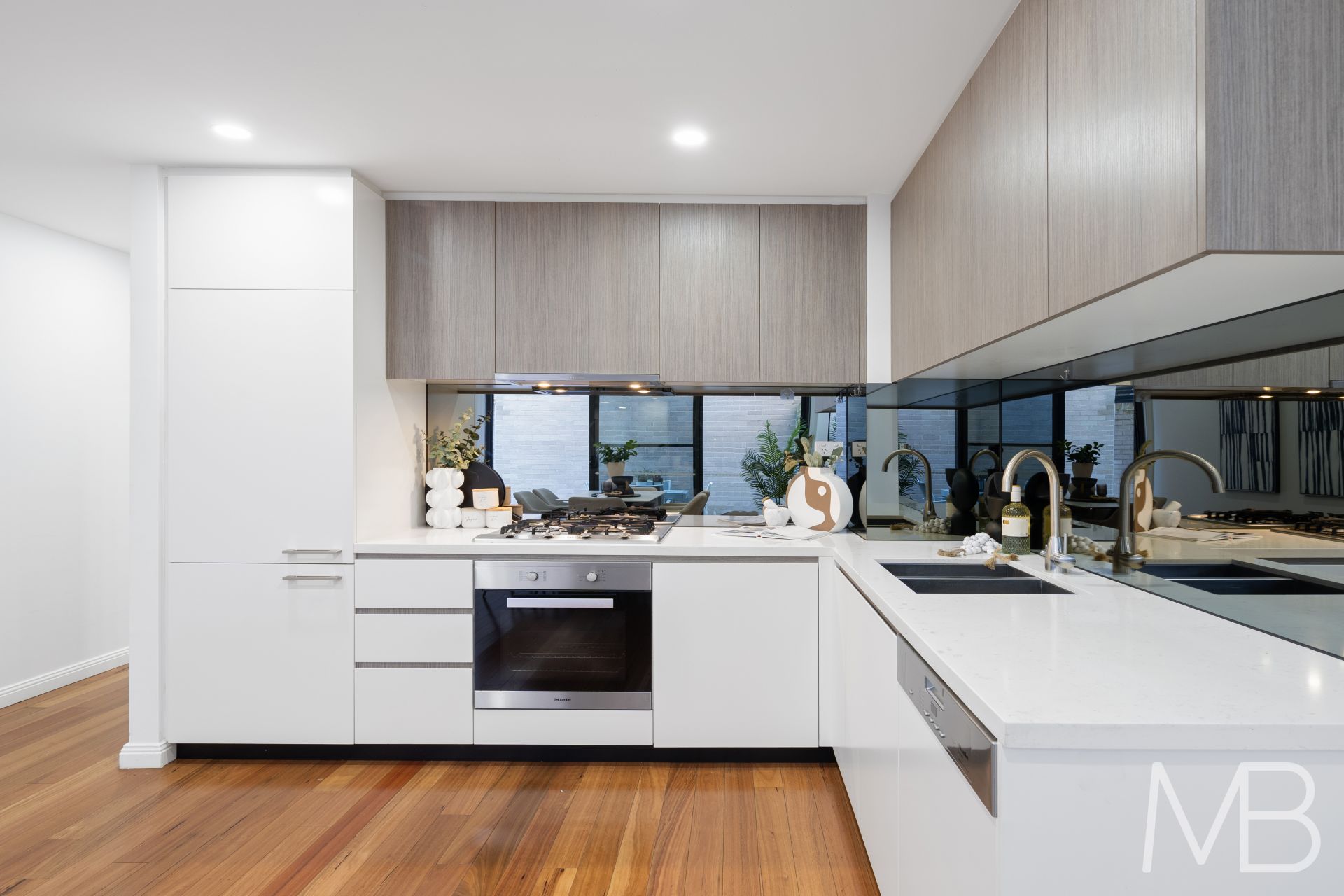 Gourmet kitchen with quality appliances, sleek cabinetry and stone benchtops