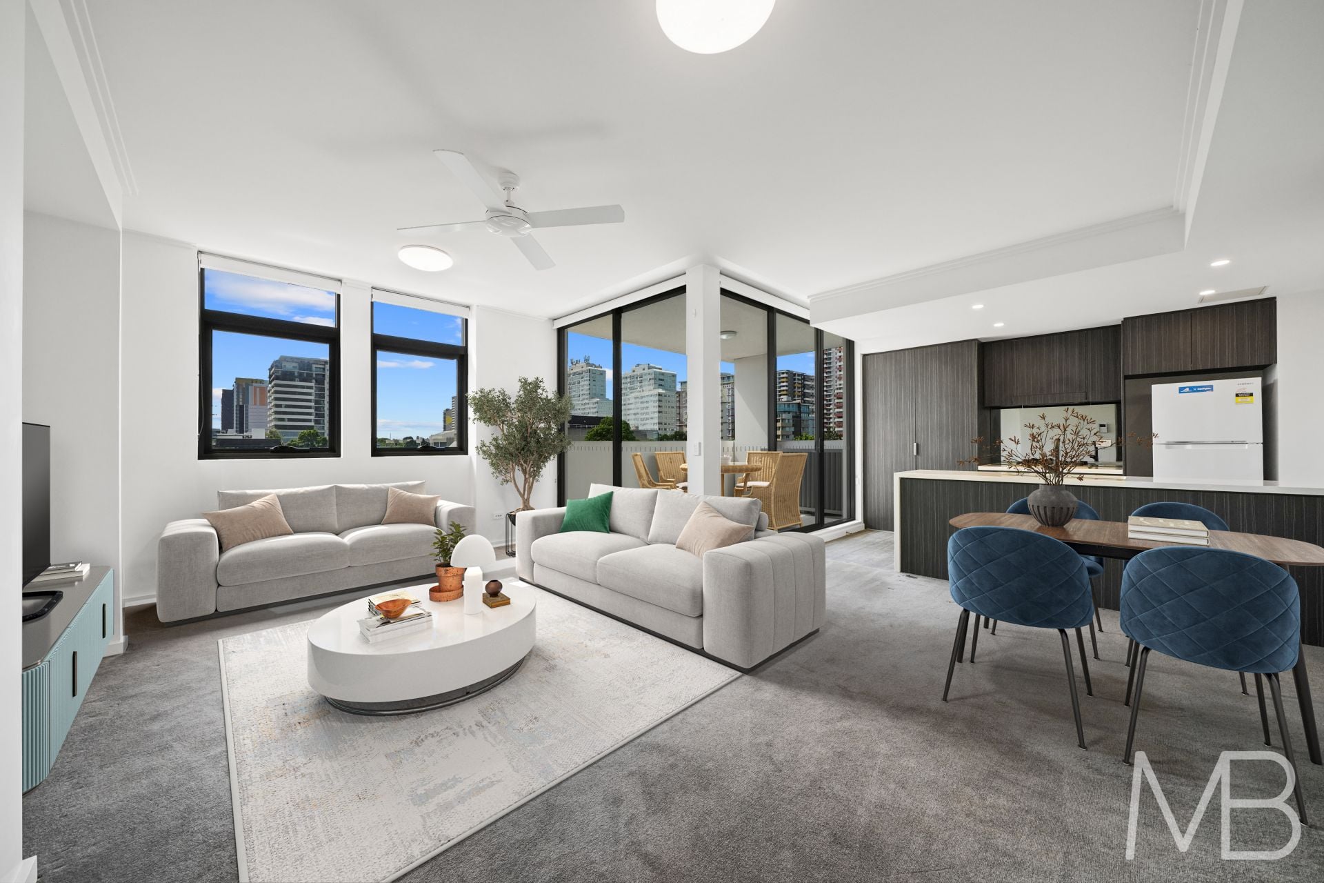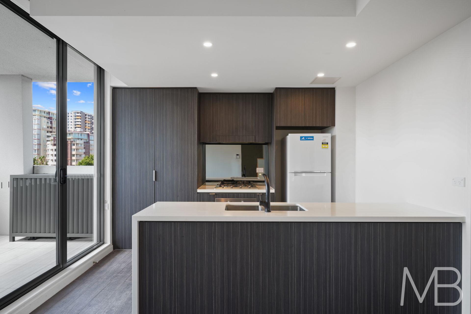 The sleek kitchen features modern appliances, generous storage, and stylish benchtops