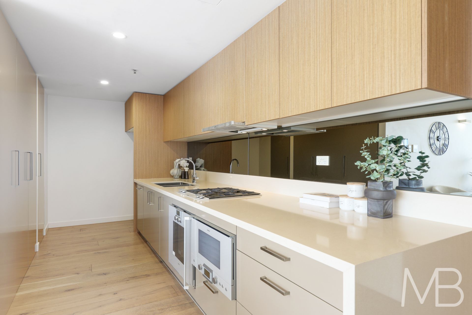 Stylish kitchen with high quality appliances, gas cooking and dishwasher