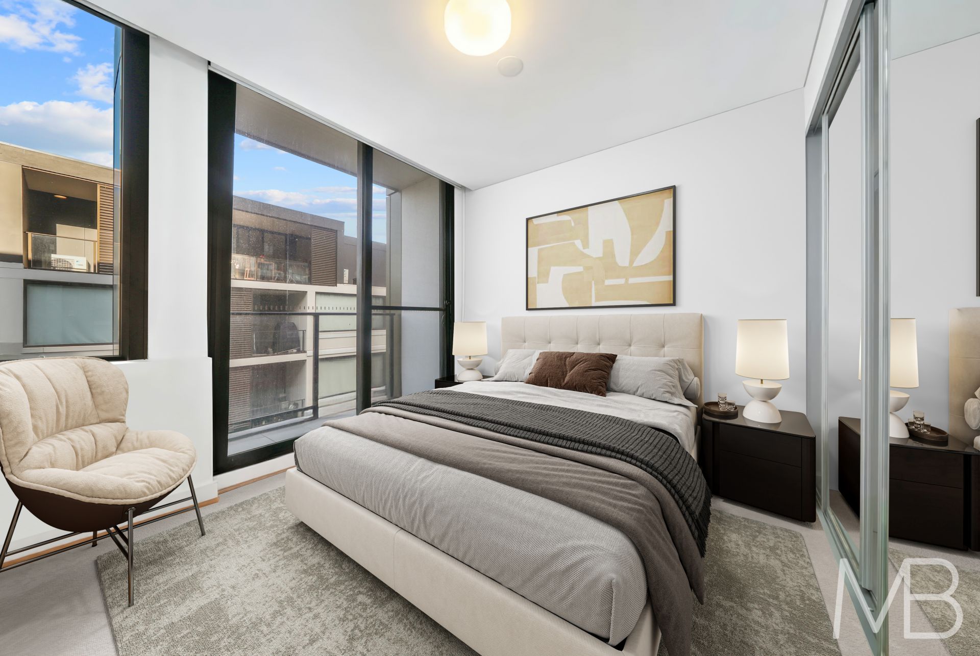 Modern two bedrooms with built-in wardrobe, master room with balcony