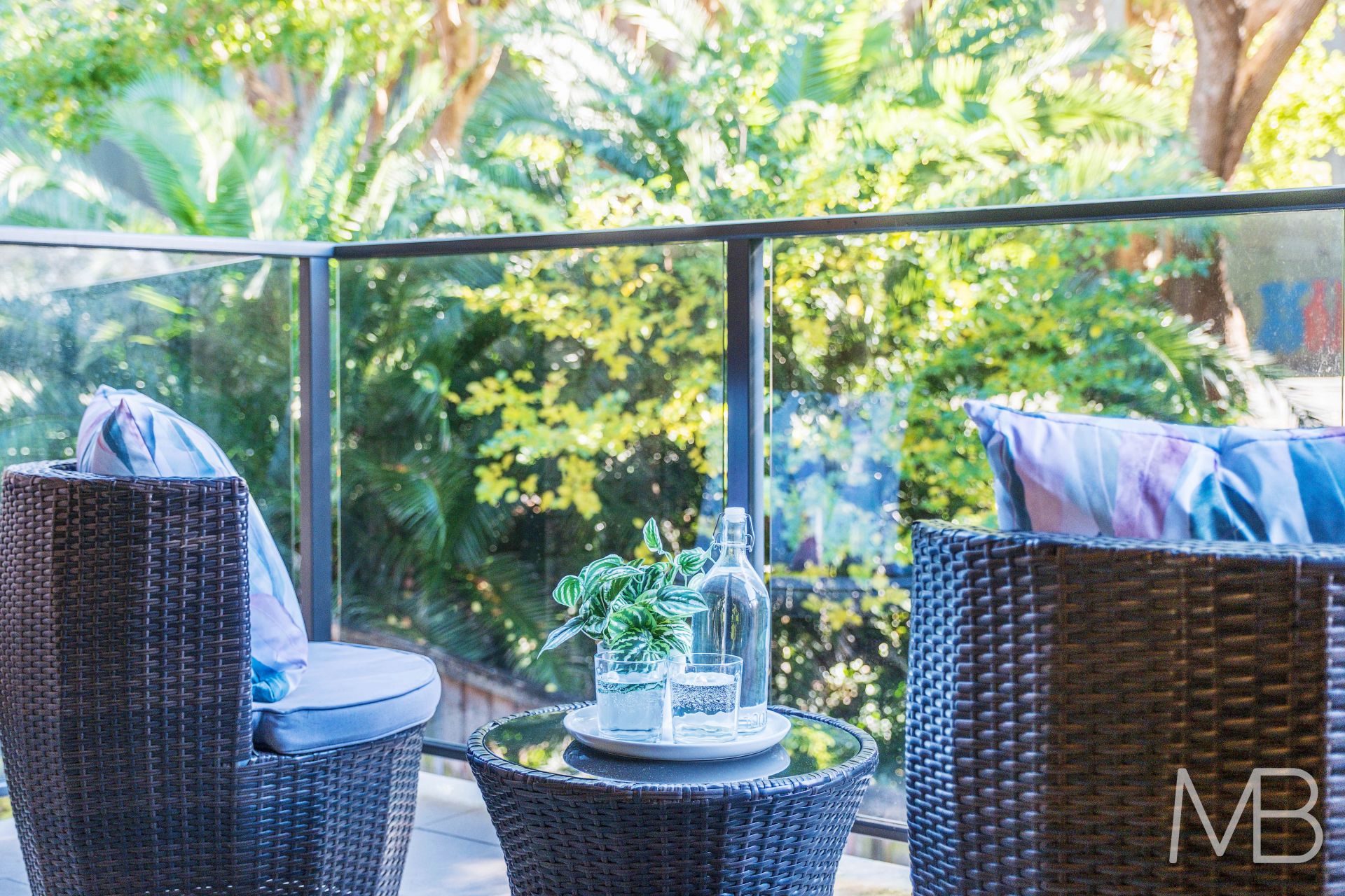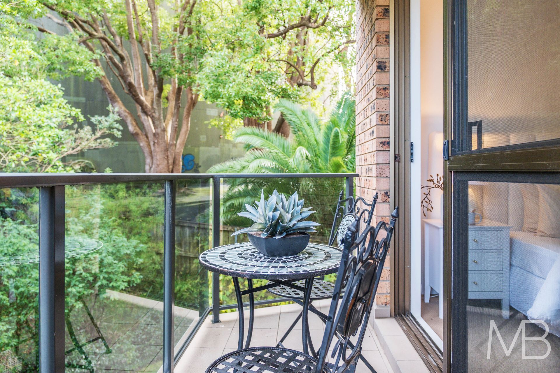 Sunny north facing balcony off living room