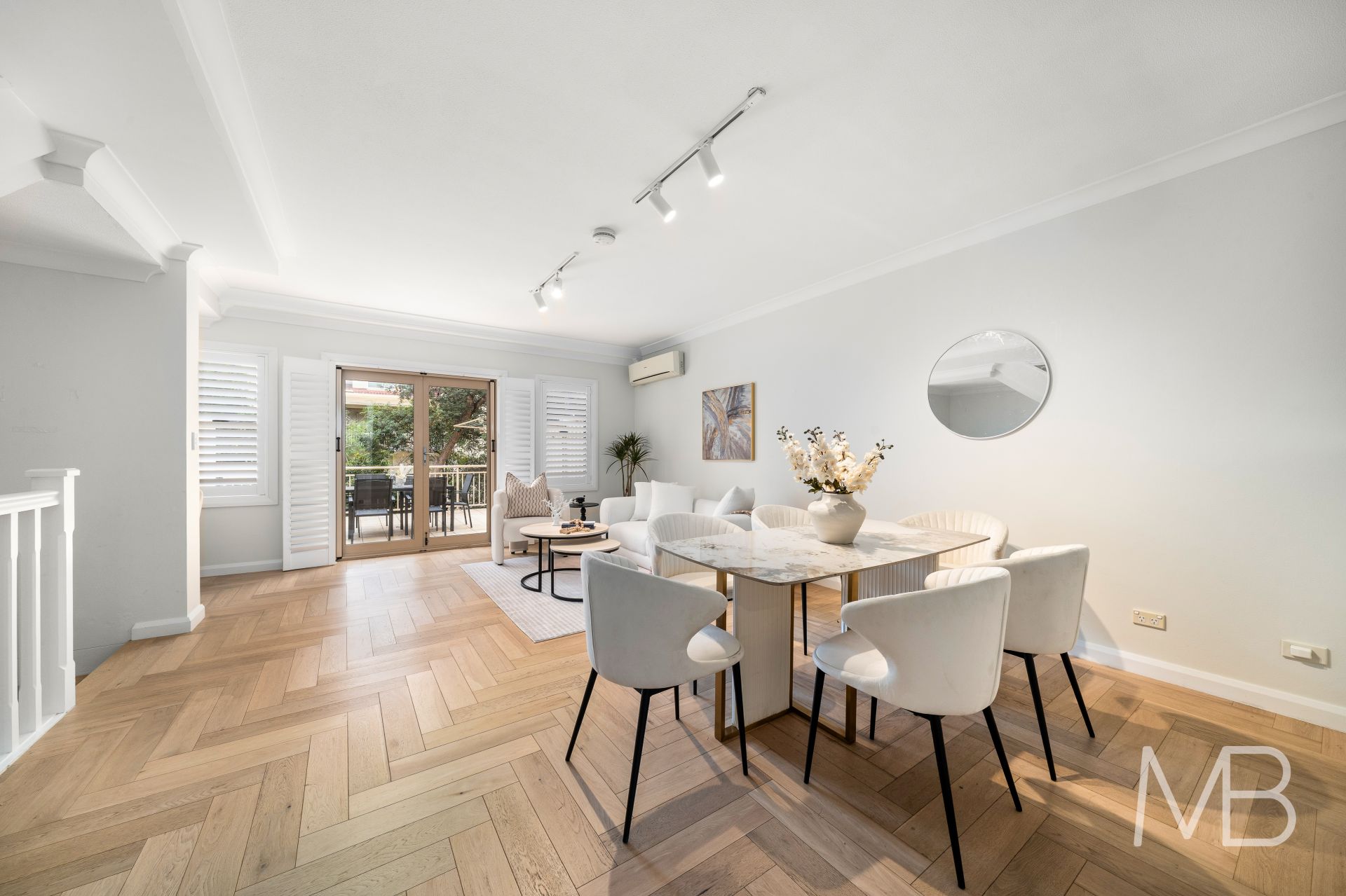 Open plan living and dining throughout to courtyard
