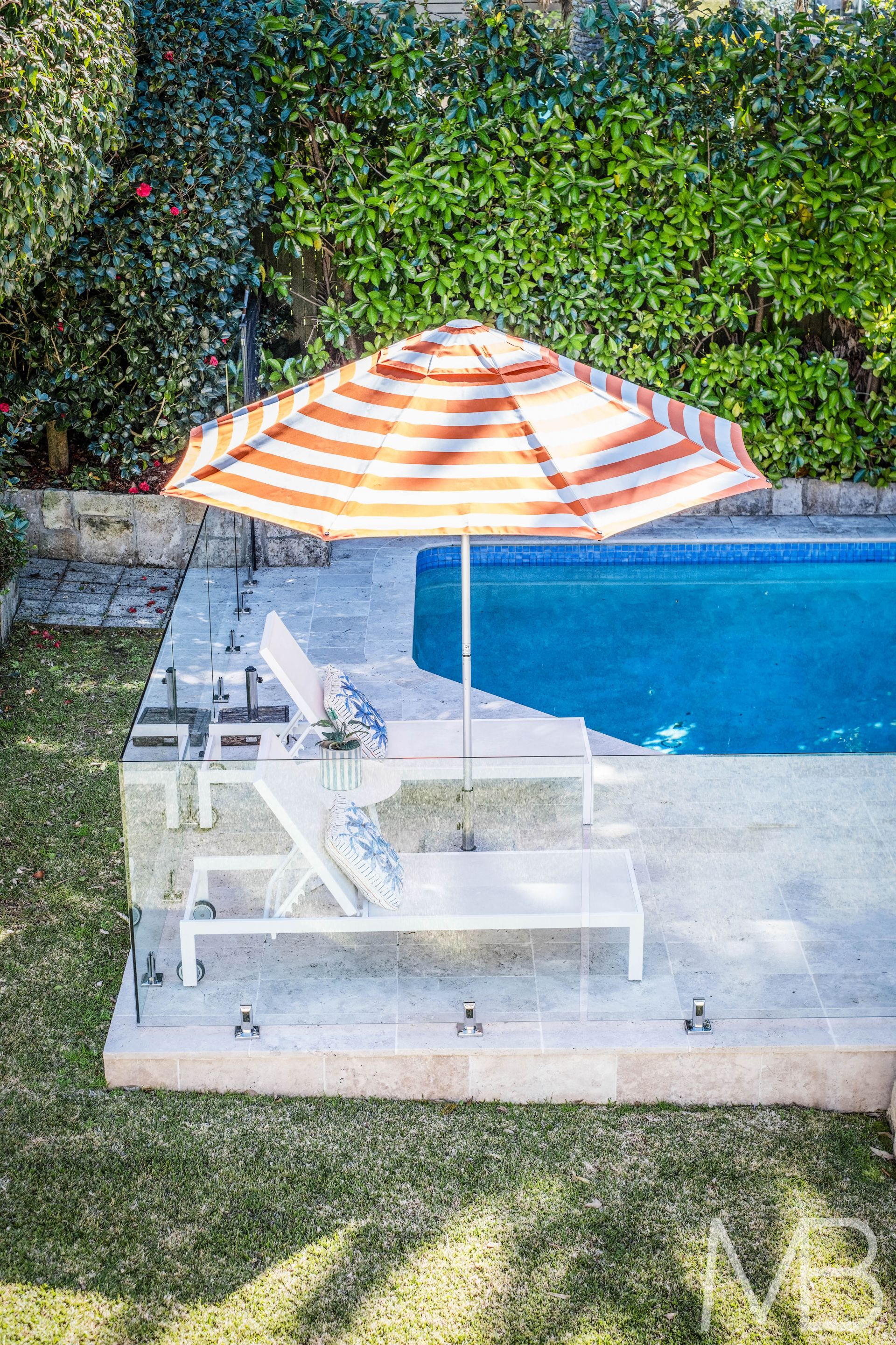 Coveted north-to-rear aspect showcasing the alfresco, lawn and solar-heated pool with sunlight, perfect for indoor-outdoor entertaining