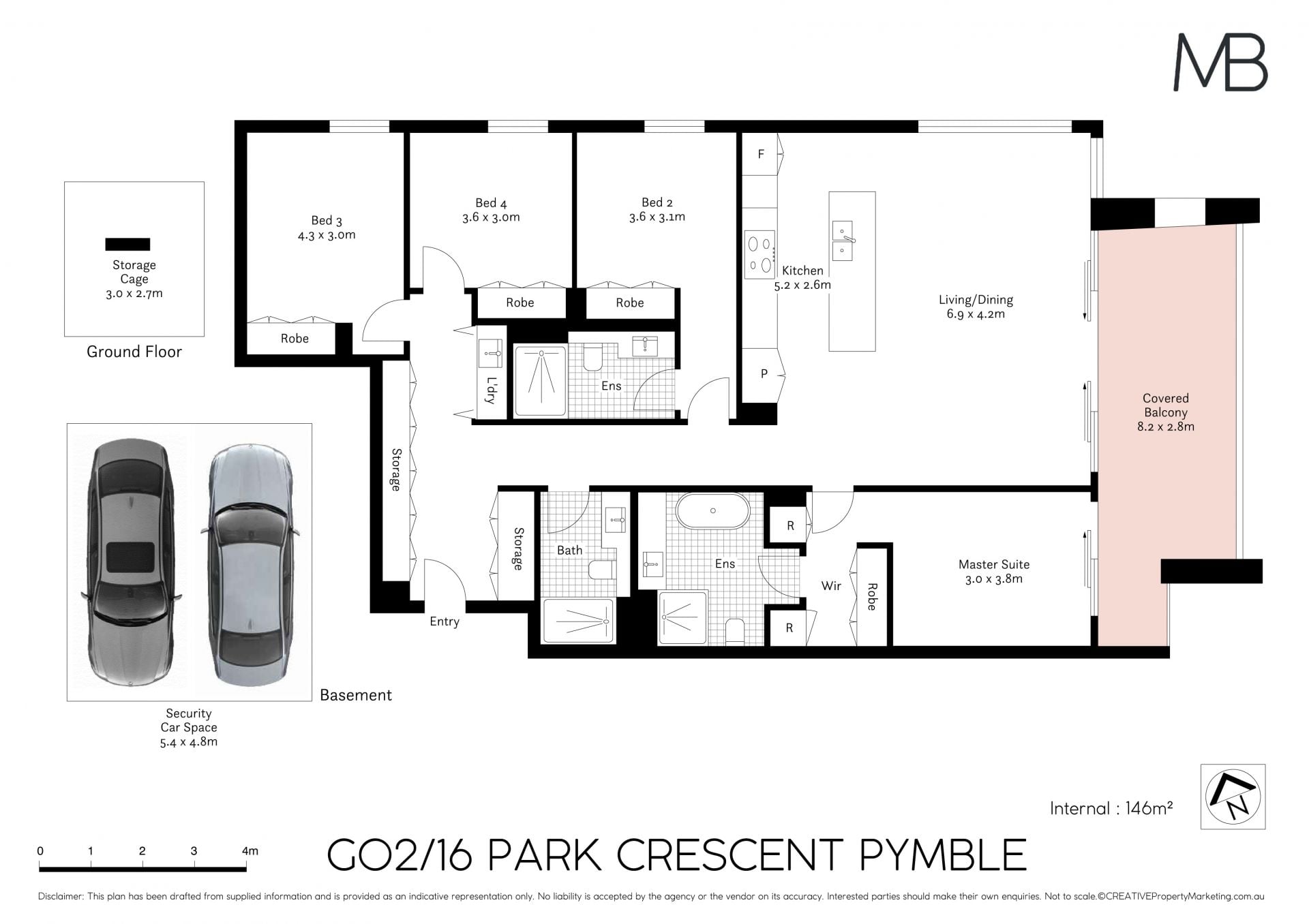 Secure parking for two cars, plus a convenient storage cage
