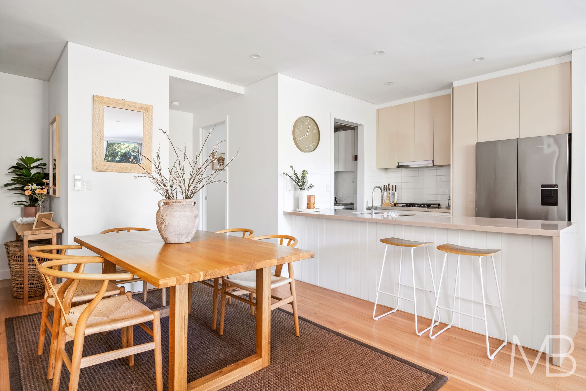 Freshly painted interiors complemented by wide timber floorboards and high ceilings