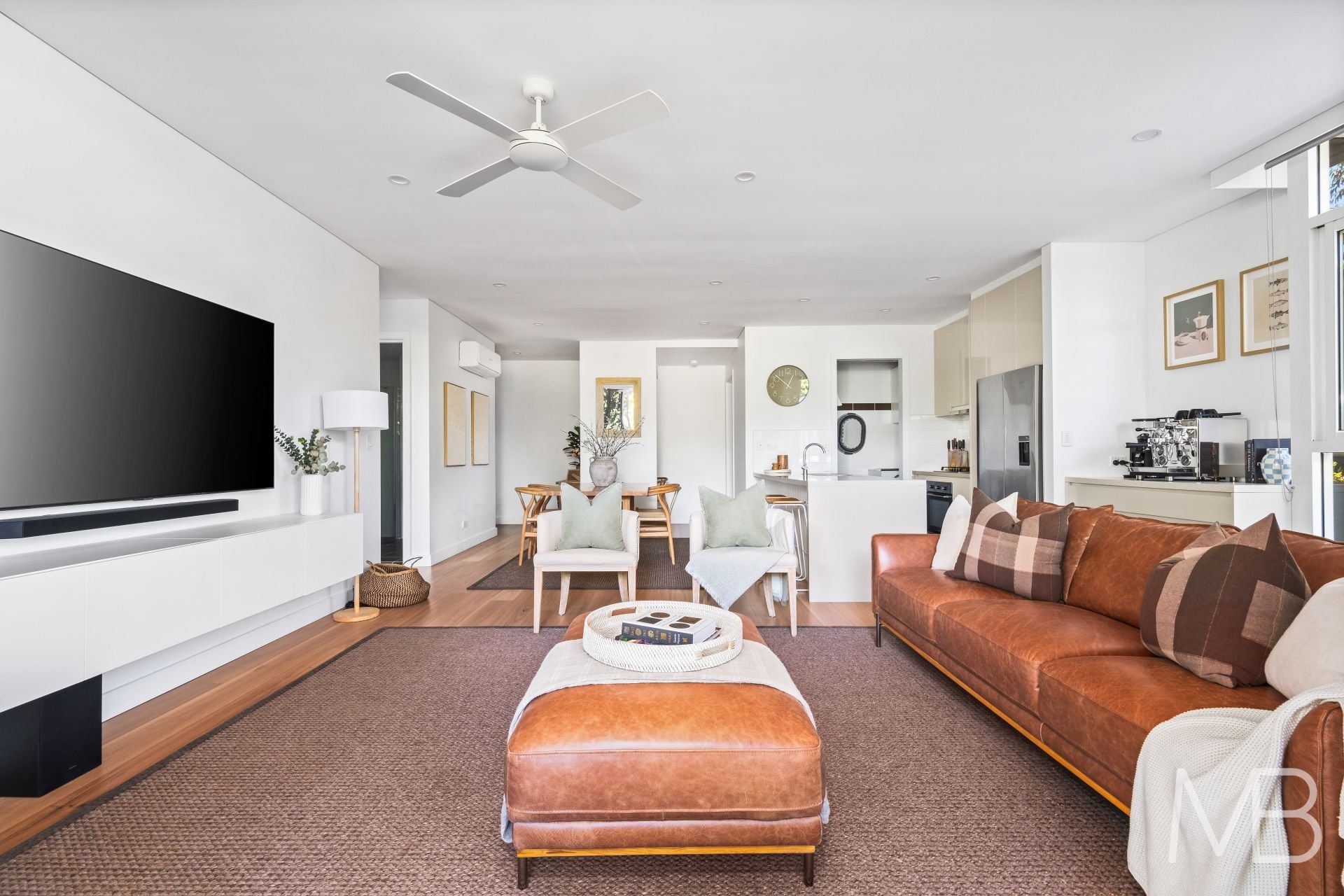 Light-filled open-plan living and dining flowing to a private garden courtyard