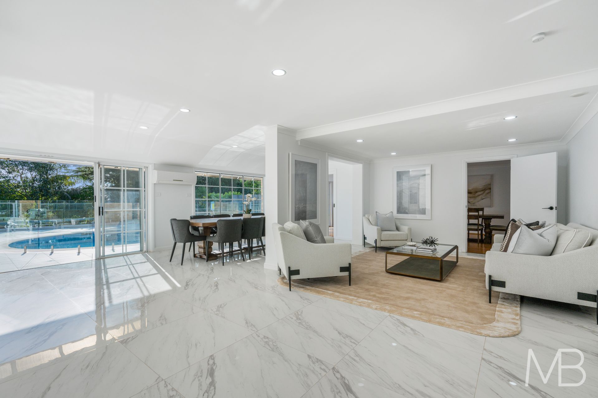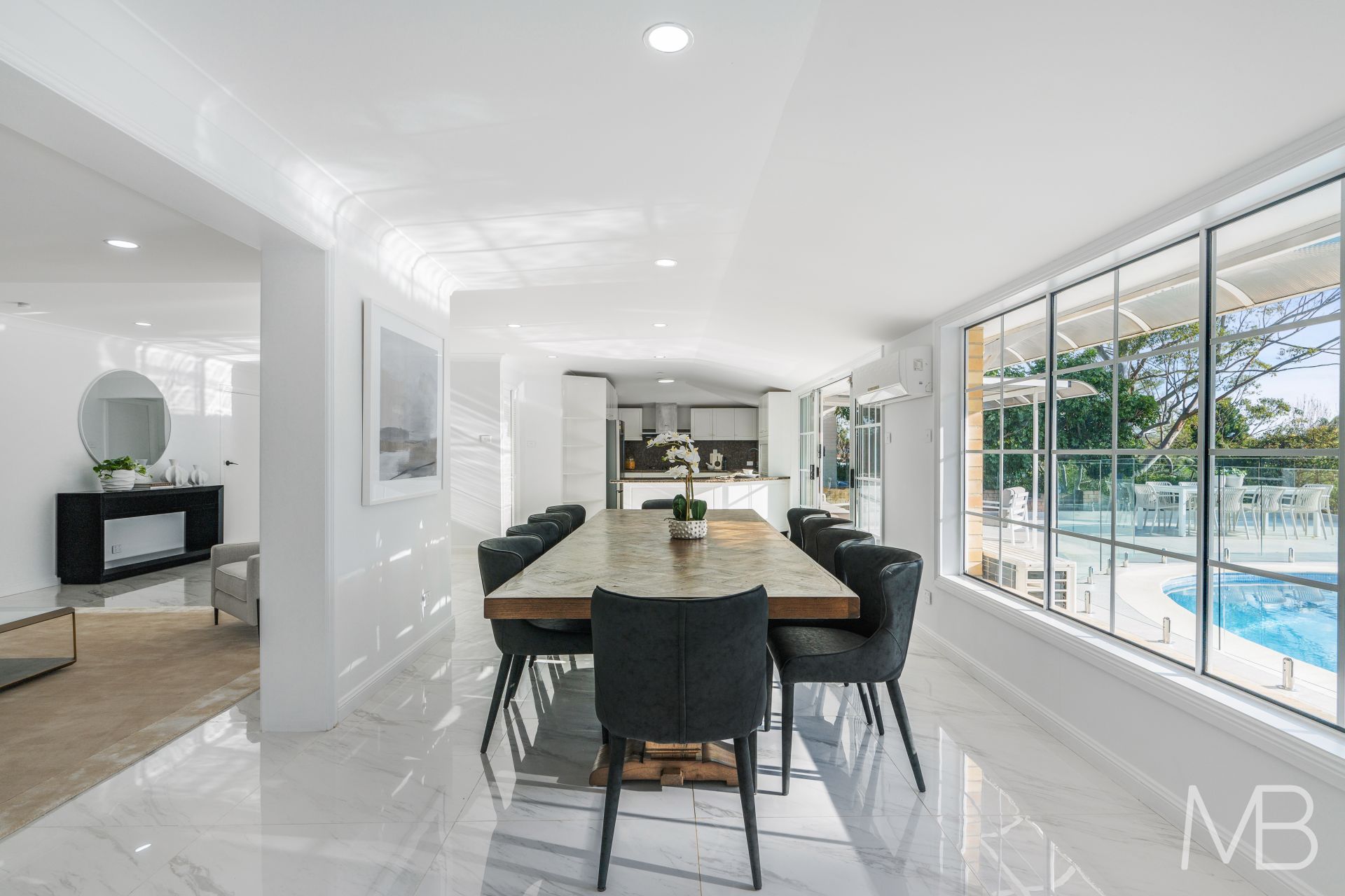 Resting on an exceptional 962sqm block directly opposite the expansive green of Hassall Park, it holds family at its core with a wonderful open plan design where casual living zones sweep out to expansive terraces and the beautiful fully mosaic tiled pool