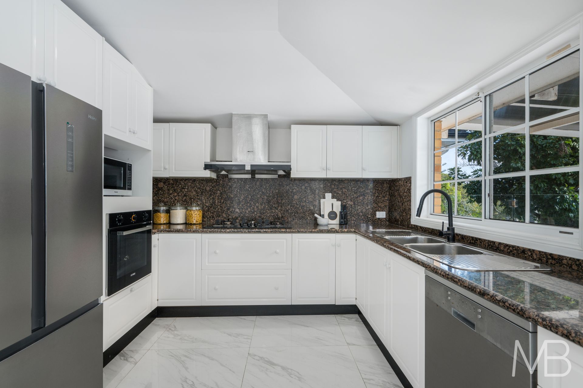 The stone‑topped gas kitchen features a walk‑in pantry, while an additional area on the living level provides the option for a second study zone perfect for the kids or if two people work from home