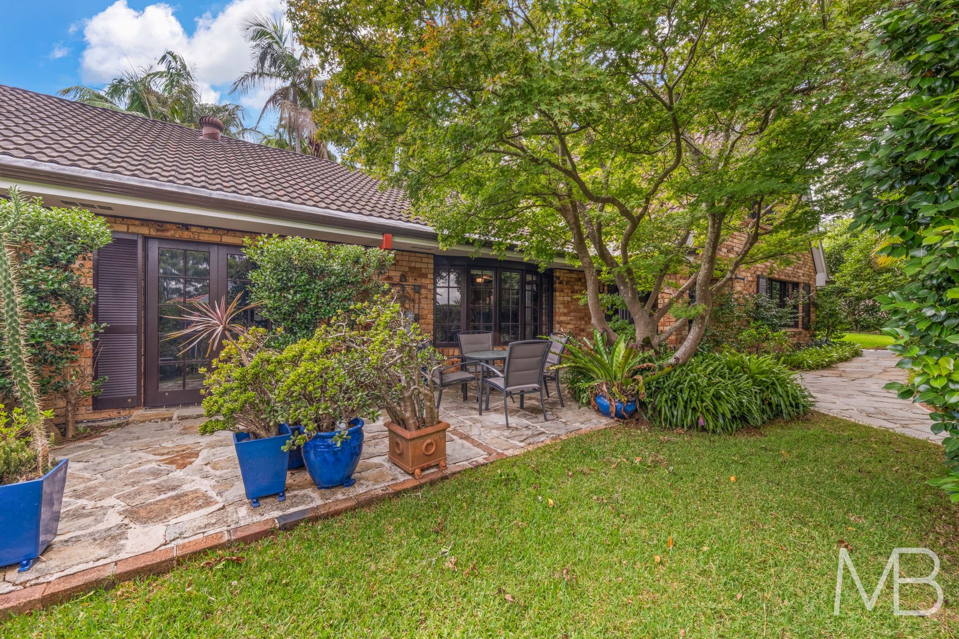 French doors leading out to sandstone entertaining area