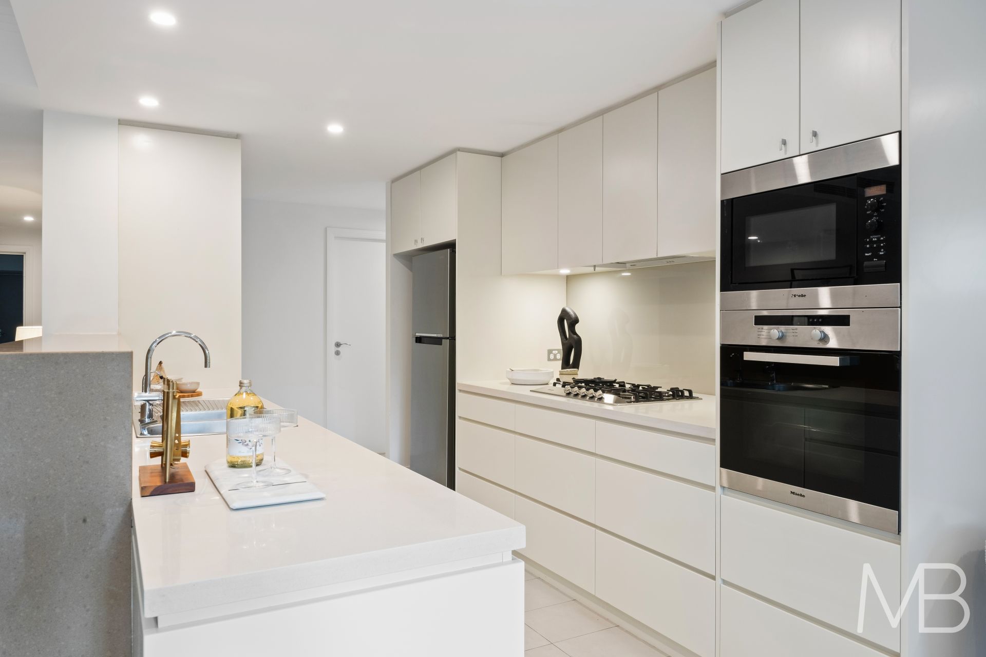 The kitchen features Miele appliances, sleek cabinetry, and a user-friendly layout that makes cooking a pleasure - for a few or a crowd