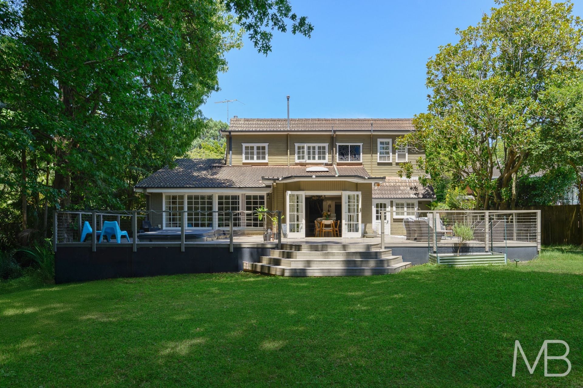 Sweeping gardens with a sun-drenched entertaining deck and private spa pool area