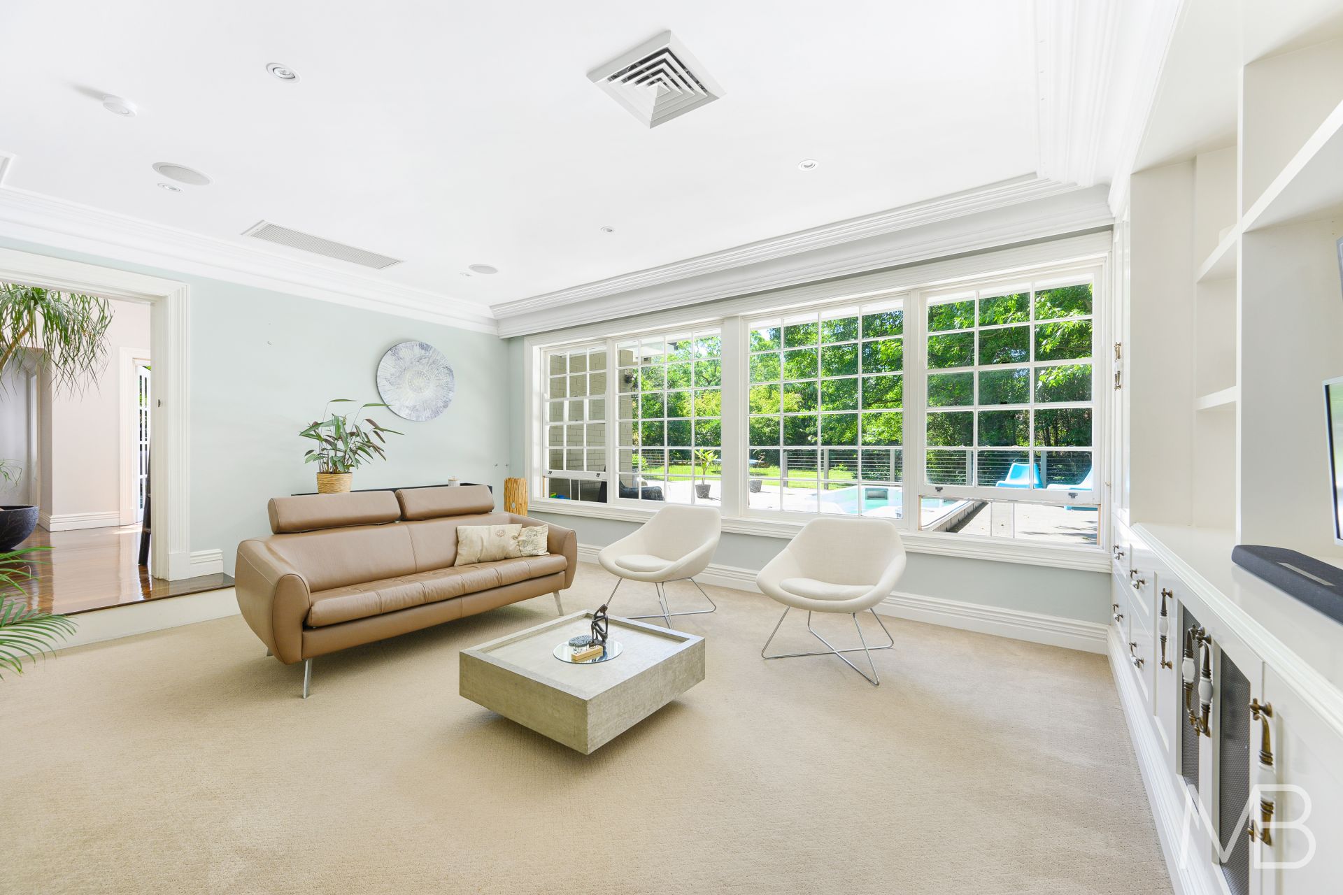 The versatile layout provides a wide selection of formal and casual living spaces, all flowing effortlessly to sweeping gardens with a sun-drenched entertaining deck and private spa pool area