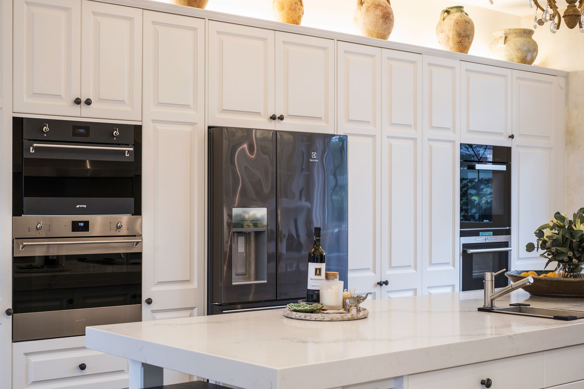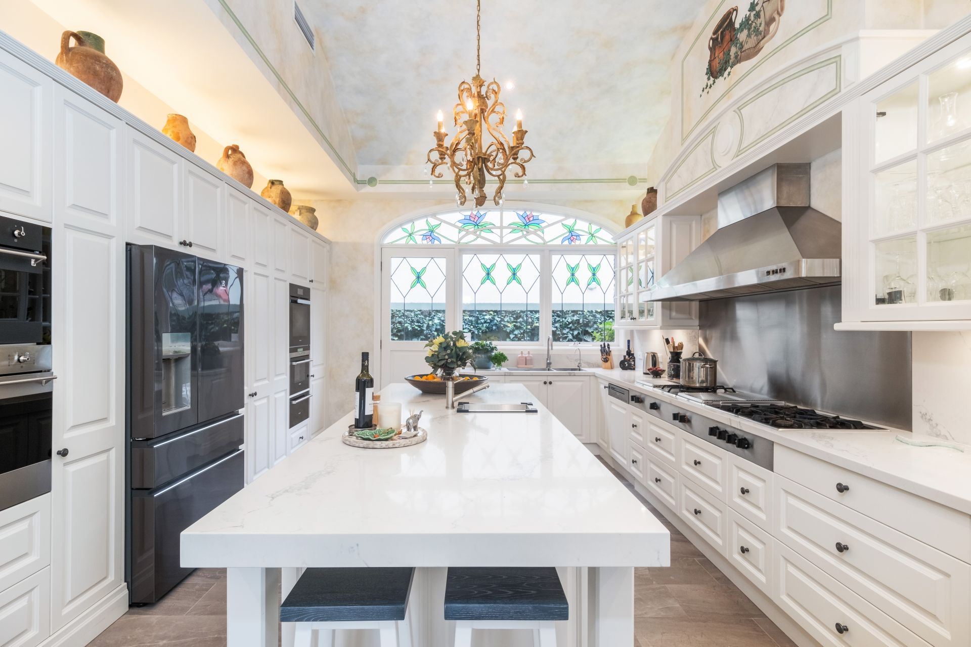 The gourmet kitchen is a culinary masterpiece sure to delight even the most discerning cook and features Caesarstone countertops, European appliances, a generous island bench, and a walk-in pantry