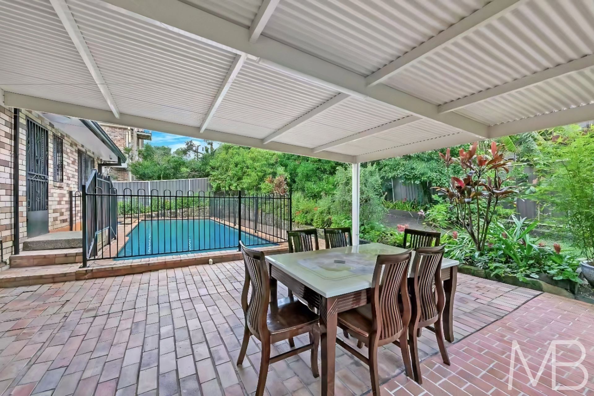 Inground swimming pool and a covered alfresco area