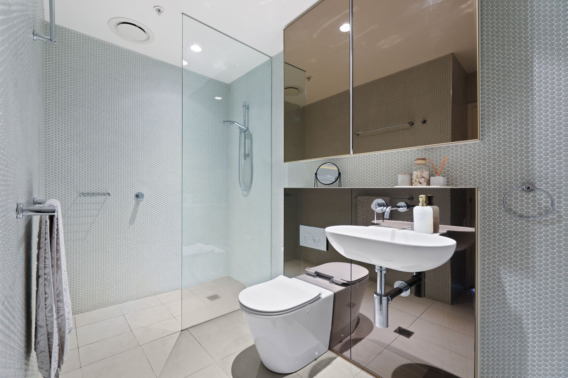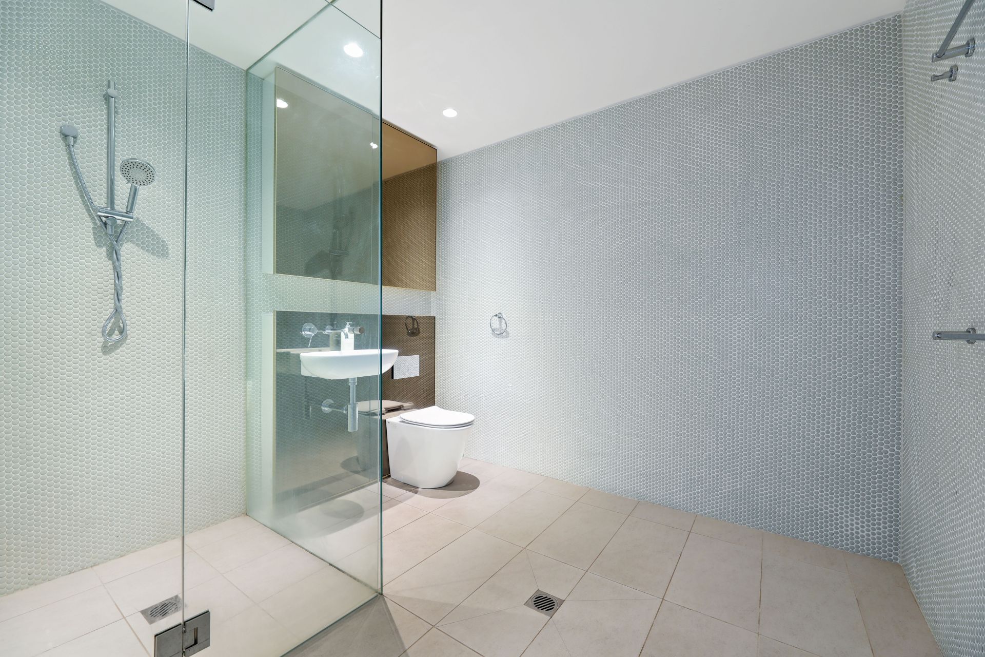 Spacious main bathroom and ensuite with large frameless glass shower